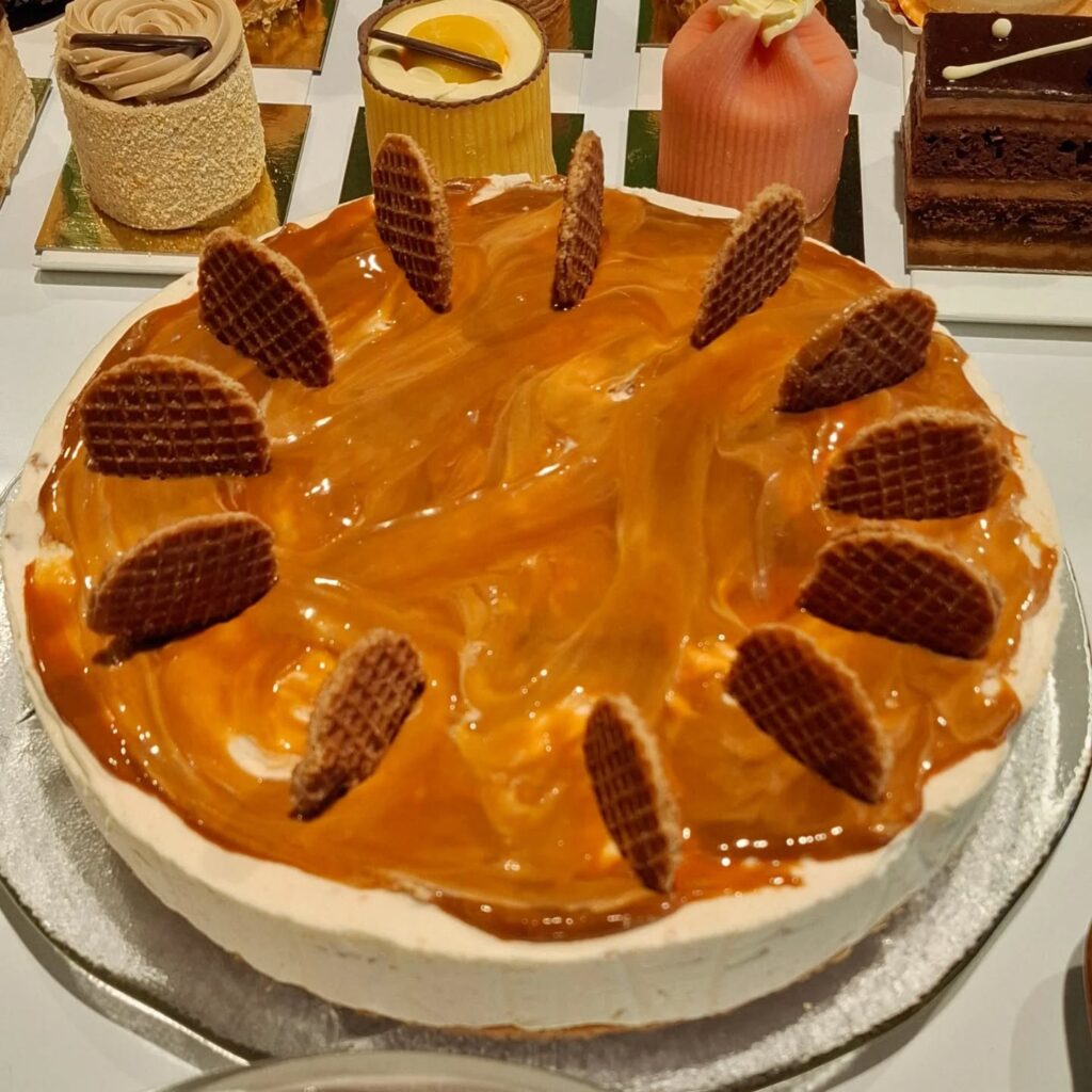 Cheesecake met stroopwafel en witte chocolade.